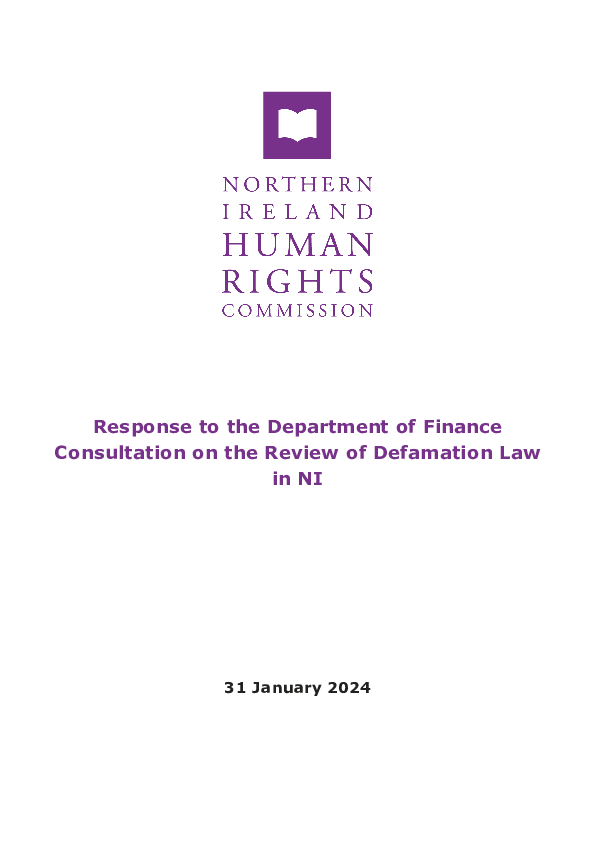 NIHRC Response to the Department of Finance Consultation on the Review of Defamation Law in NI