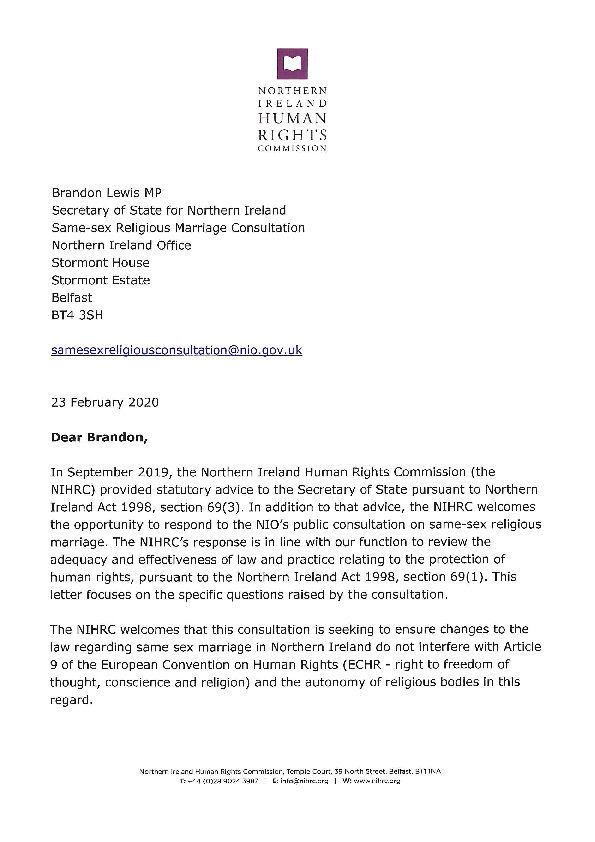 NIHRC response to the Northern Ireland Office consultation on same-sex religious marriage