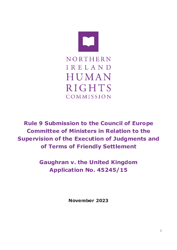 NIHRC Rule 9 Submission to the Council of Europe Committee of Ministers in Relation to the Supervision of the Execution of Judgments and of Terms of Friendly Settlement: Gaughran v. the United Kingdom