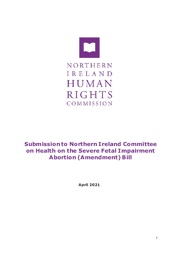 Submission to Northern Ireland Committee on Health on the Severe Fetal Impairment Abortion (Amendment) Bill