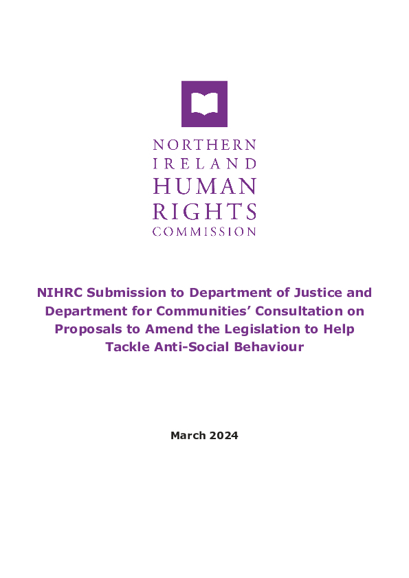 NIHRC Submission to Department of Justice and Department for Communities’ Consultation on Proposals to Amend the Legislation to Help Tackle Anti-Social Behaviour