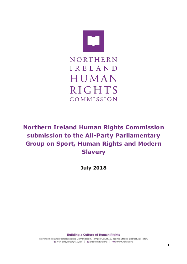 NIHRC submission to the All-Party Parliamentary Group on Sport, Human Rights & Modern Slavery