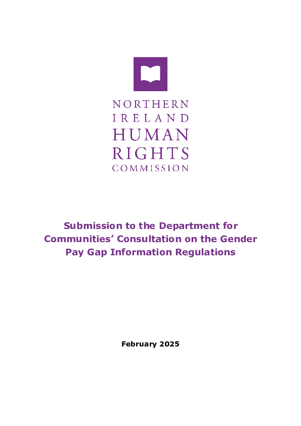 NIHRC Submission to the Department for Communities’ Public Consultation on Gender Pay Gap Information Regulations