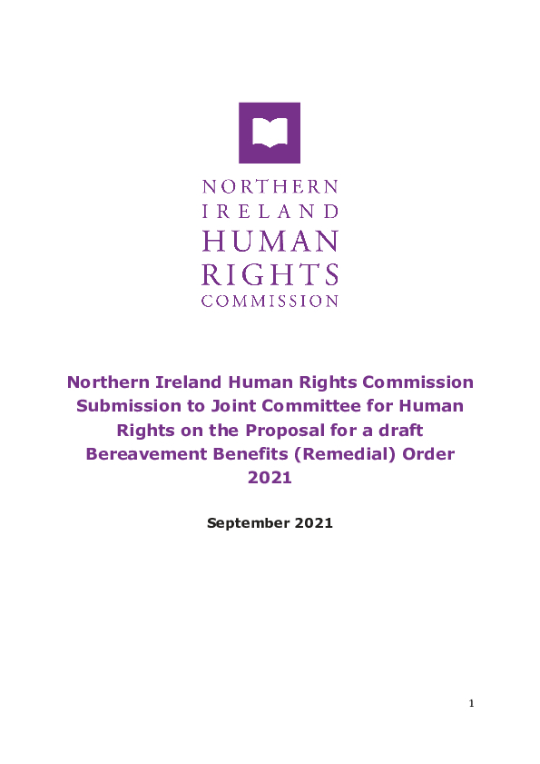 NIHRC Submission to the Joint Committee for Human Rights on the Proposal for a draft Bereavement Benefits (Remedial) Order 2021