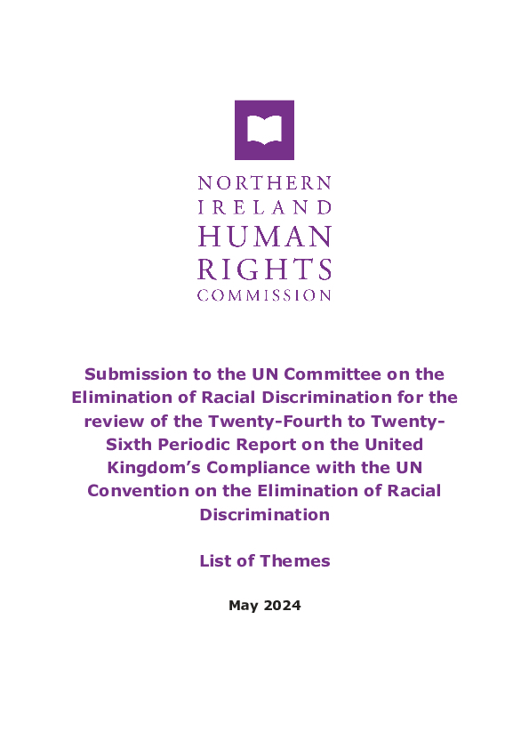 NIHRC Submission to the UN Committee on the Elimination of Racial Discrimination for the review of the Twenty-Fourth to Twenty-Sixth Periodic Report on the United Kingdom’s Compliance with the UN Convention on the Elimination of Racial Discrimination