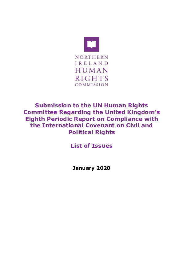 Read the Northern Ireland Human Rights Commission’s submission to the UN Human Rights Committee Regarding the United Kingdom’s Eighth Periodic Report on Compliance with the International Covenant on Civil and Political Rights