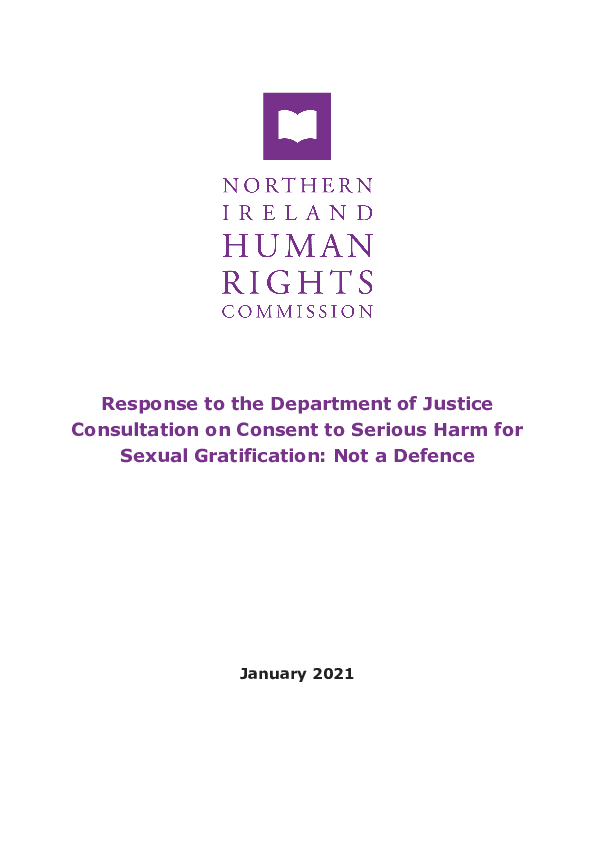- 2.14 recommends that the Department of Justice introduces legislation that removes the defence of consent to serious harm for sexual gratification. It is suggested that consideration is given to the wording used in the England and Wales Domestic Abuse Bill.