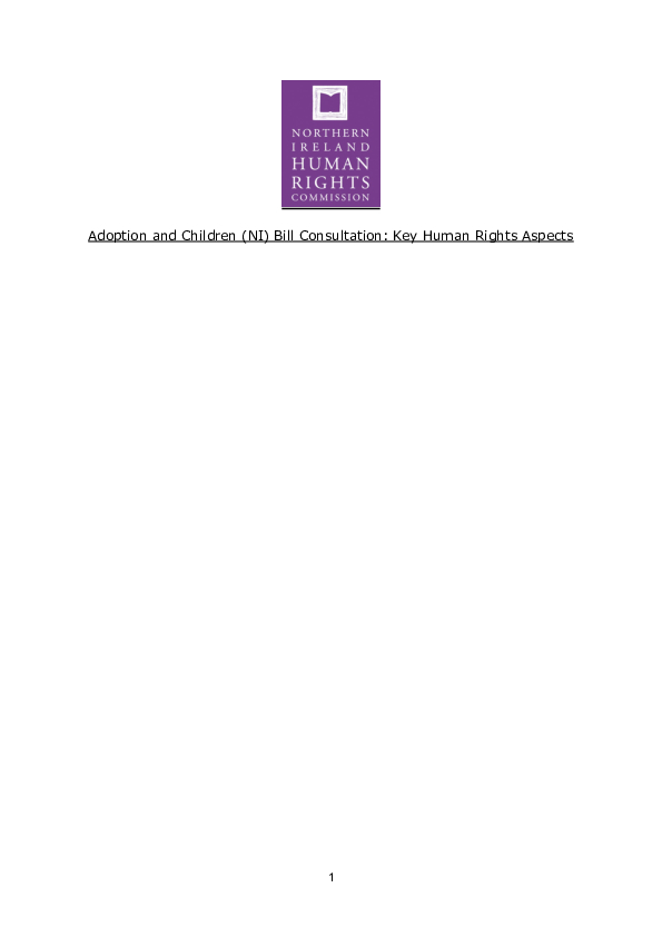 This document outlines the NIHRC’s response to the Adoption and Children (NI) Bill Consultation