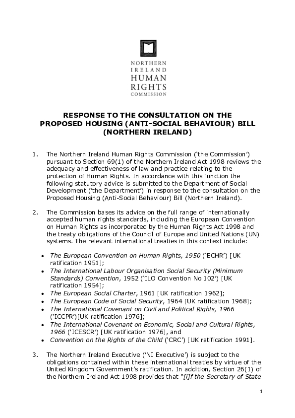 The Commission’s response to the Consultation on the Proposed Housing (Anti-Social Behaviour) Bill