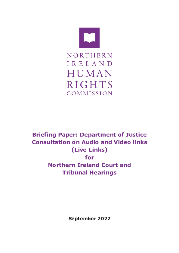 The NIHRC highlights that the use of live links can have specific implications for certain groups of court users, in particular court users with disabilities. Whilst the Department states that there is a general acceptance that live links are suitable for use in criminal and civil cases it acknowledges that during engagement events concerns were raised regarding the suitability of live links for young people and those identified as “vulnerable”.