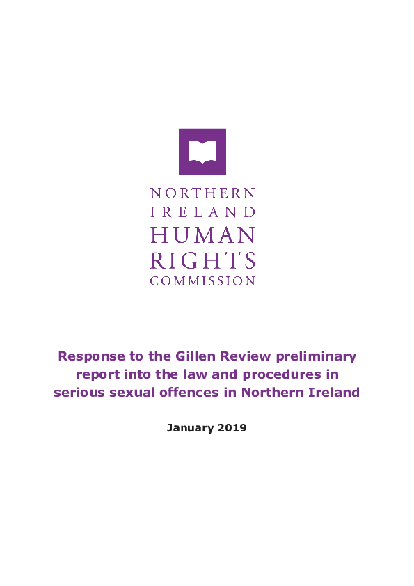 NI Human Rights Commission Response to the Gillen Review preliminary report into the law and procedures in serious sexual offences in Northern Ireland.