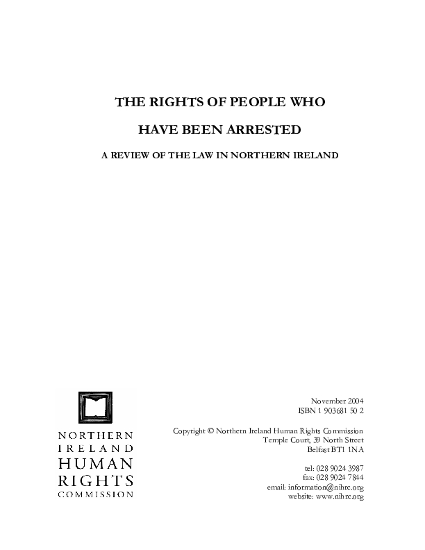 At a meeting on 20 January 2004 the Northern Ireland Human Rights Commission decided to review the existing law in Northern Ireland as it relates to alleged injustices suffered by people who have been arrested (whether or not the arrest itself was lawful) and to consider whether to make any recommendations for reform. In particular the Commission decided to look at the rights of arrested people who have been mistreated while in custody. This paper is the outcome of that review