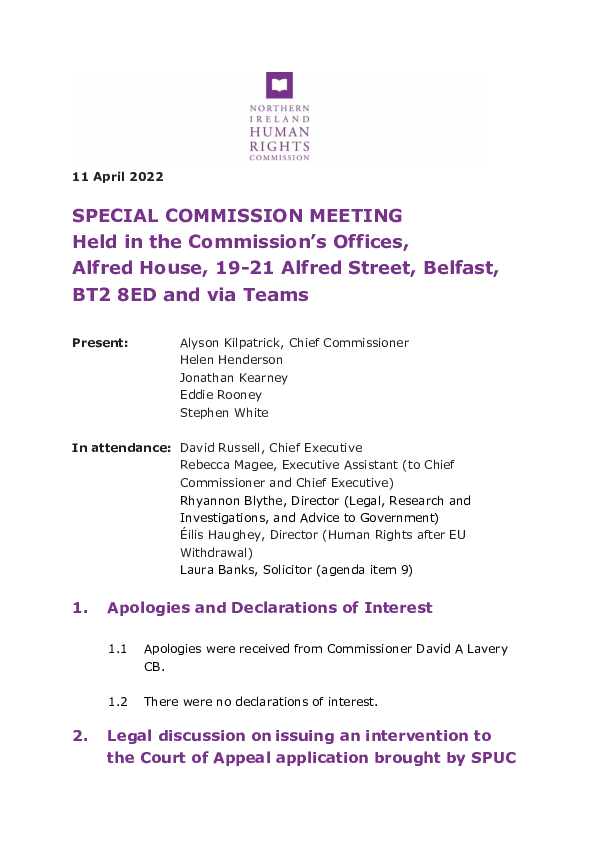 The Northern Ireland Human Rights Commission held a Special Commission Meeting on 11 April 2022.