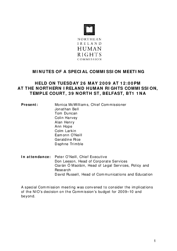 Minutes of the Special Commission Meeting, held on 26 May 2009.