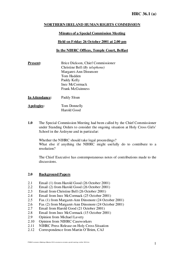 Minutes of the Special Commission Meeting, held on 26 October 2001.