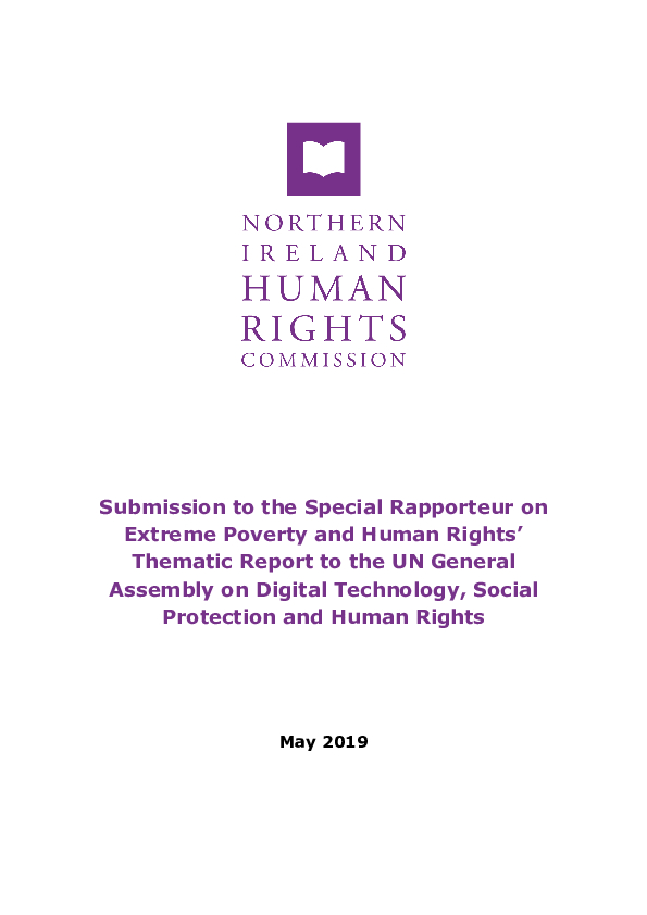 Northern Ireland Human Rights Commission Submission to the Special Rapporteur on Extreme Poverty and Human Rights’ Thematic Report to the UN General Assembly on Digital Technology, Social Protection and Human Rights