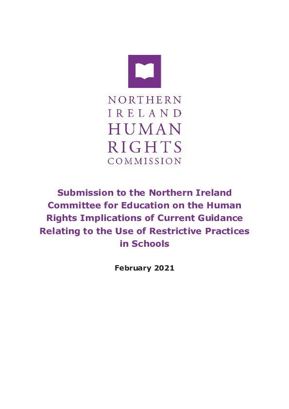 Submission: NI Committee for Education on the Human Rights Implications of Current Guidance Relating to the Use of Restrictive Practices in Schools