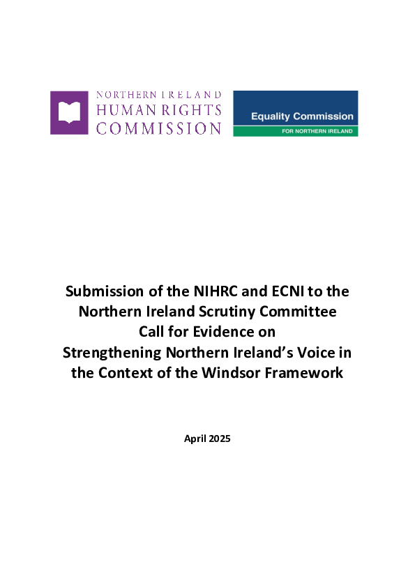 Submission of the NIHRC and ECNI to the Northern Ireland Scrutiny Committee on Strengthening Northern Ireland’s Voice in the Context of the Windsor Framework