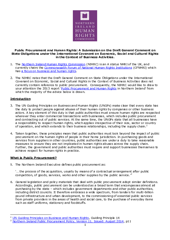 The Commission’s submission on the Draft General Comment on ICESCR in the Context of Business Activities