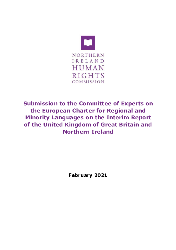 Read the Northern Ireland Human Rights Commission submission to the Committee of Experts on the European Charter for Regional and Minority Languages on the Interim Report of the United Kingdom of Great Britain and Northern Ireland.