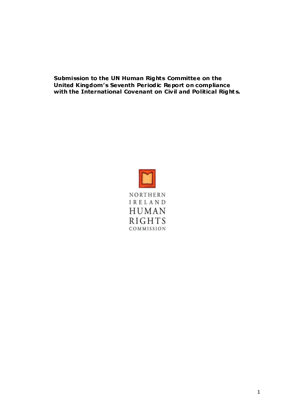 As part of the Northern Ireland Human Rights Commissions engagement with the United Nations and the Council of Europe treaty monitoring processes, it presents this submission regarding the UK’s Seventh Periodic Report on compliance with the International Covenant on Civil and Political Rights (ICCPR) to the United Nations Human Rights Committee Pre Session working group.