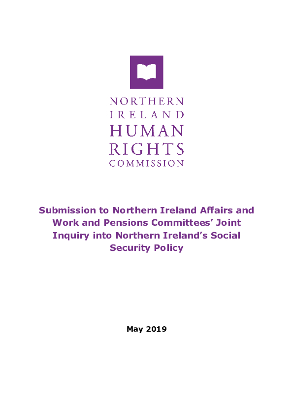 Northern Ireland Human Rights Commission submission to the Northern Ireland Affairs and Work and Pensions Committees’ Joint Inquiry into Northern Ireland’s Social Security Policy.