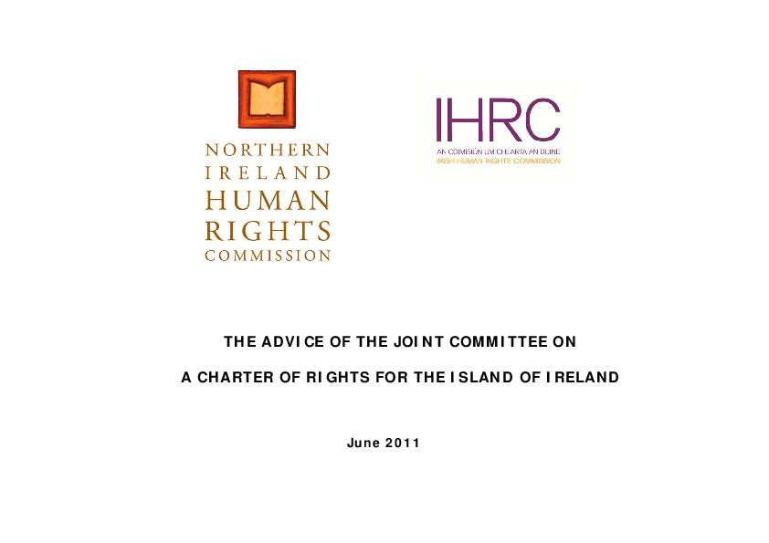 The Joint Committee of the Northern Ireland Human Righ ts Commission and the Irish Human Rights Commission was mandated by the Belfast (Good Fr iday) Agreement 1998 to consider the po ssibility of ‘A Charter of Rights for the island of Ireland’. The advice contained in this document represents the response from the two Commissions in this regard. We have concluded that a Charter is justifiable on the basis that there is a commonality of rights protected in both jurisdictions and that an equivalence of human rights protections, if achieved, could assist in underpinning the peace process in both jurisdictions. A Charter could thus build upon the commitments in the Belfast (Good Friday) and St Andrews Agreements in seek ing to provide an equivalent level of protection for fundamental rights both in Northern Ireland and the Republic of Ireland.