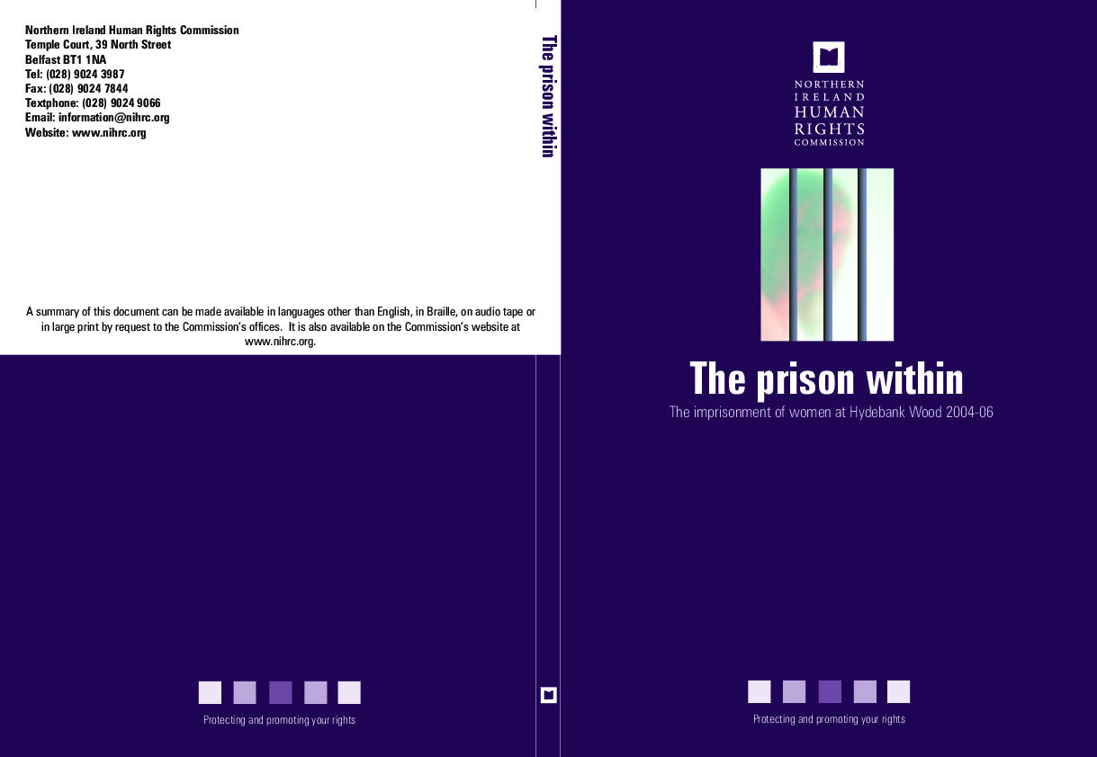 Due to the special vulnerability of women in detention, the Northern Ireland Human Rights Commission decided to make the human rights of female prisoners one of its strategic priorities. The Prison Within is our second report, following The Hurt Inside in 2005.