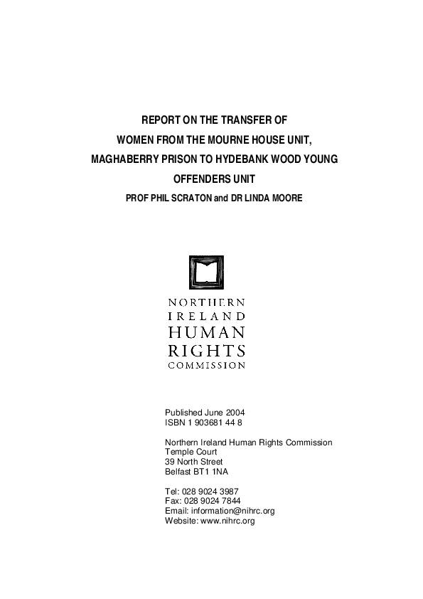 This report arises out of independent research being carried out on behalf of the Northern Ireland Human Rights Commission into the treatment of women and girls in custody and its compliance with human rights law and standards.
