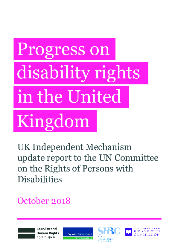 Update Report to UN Committee on the Rights of Persons with Disabilities by the UK Independent Mechanism, published in October 2018.