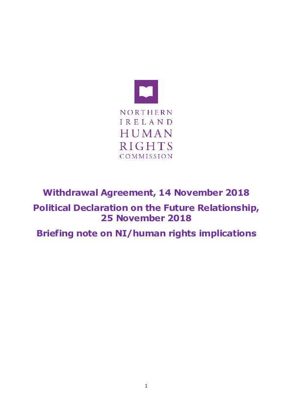 Withdrawal Agreement, 14 November 2018, Political Declaration on the Future Relationship, 25 November 2018 - Briefing note on NI/human rights implications