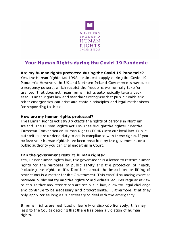 Your Human Rights during the Covid-19 pandemic